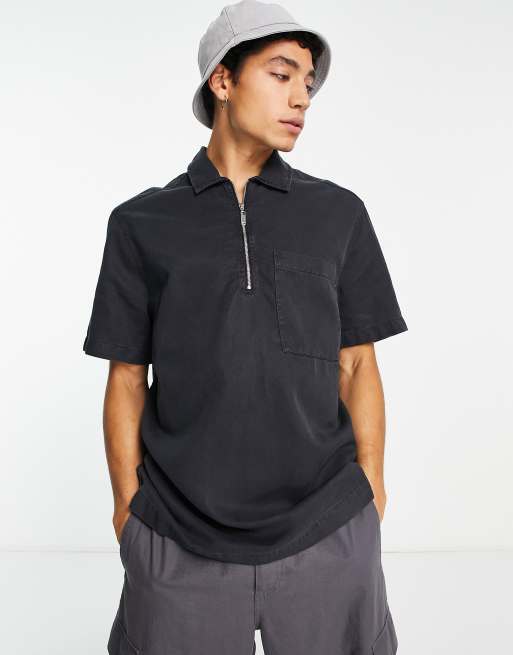 River Island short sleeve zip through shirt in washed black