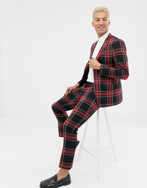 River Island skinny fit suit with dandy check in red