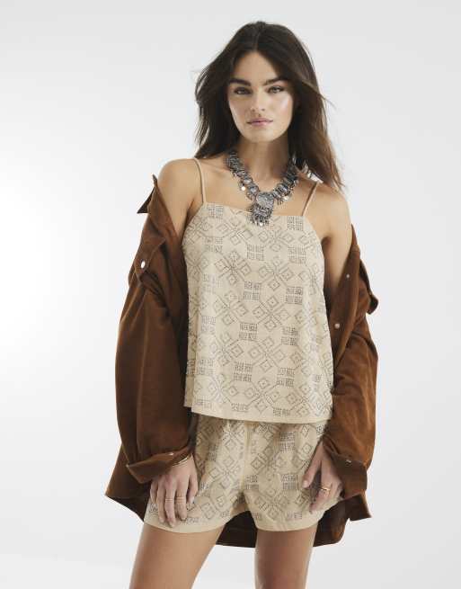 River Island Sleeveless embellished cami top in stone - medium