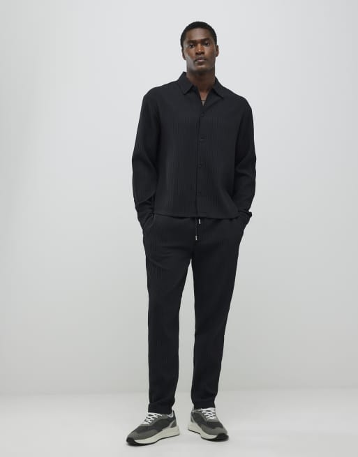 River Island Slim fit plisse joggers in black