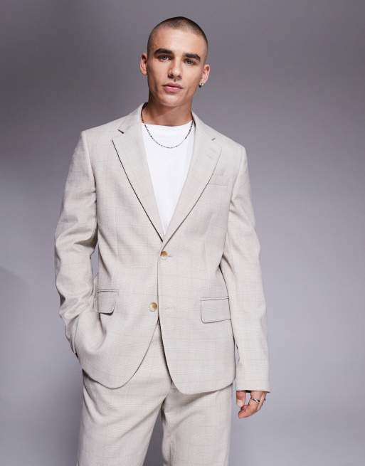 River Island slim fit suit jacket in beige check