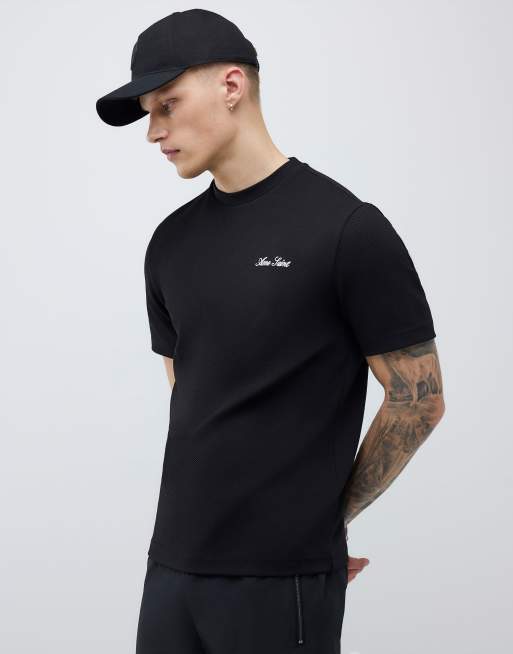 River Island Slim fit textured ame saint t-shirt in black