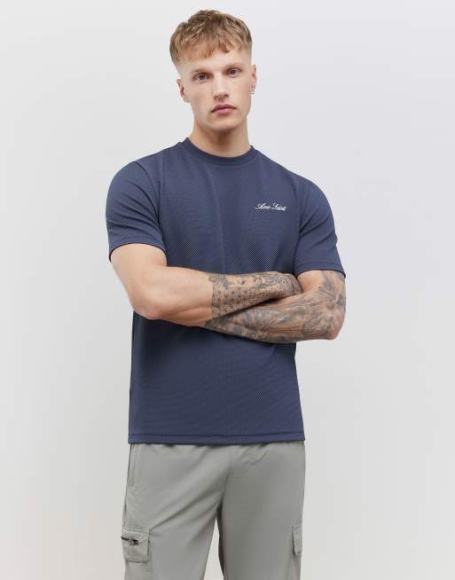 River Island Slim fit textured ame saint t-shirt in grey - dark