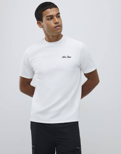 River Island Slim fit textured ame saint t-shirt in white