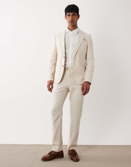 River Island slim linen blend suit trousers in light stone
