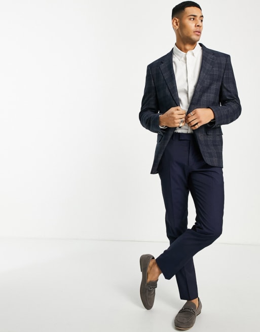 River Island slim suit jacket and trouser in navy check