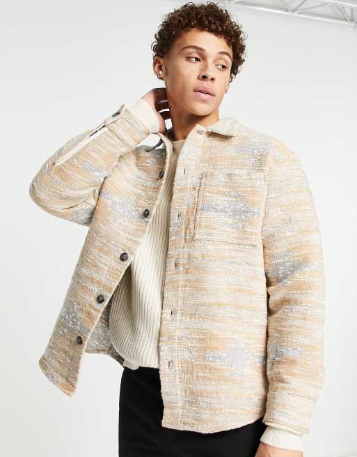 River Island slub textured overshirt in ecru