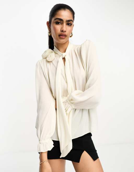 River Island smart long sleeve blouse in cream