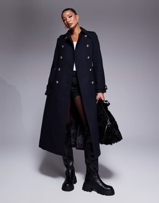 River Island smart wool look trench coat in navy