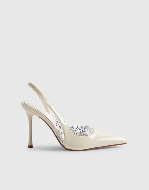 River Island Sparkle slingback court heels in white