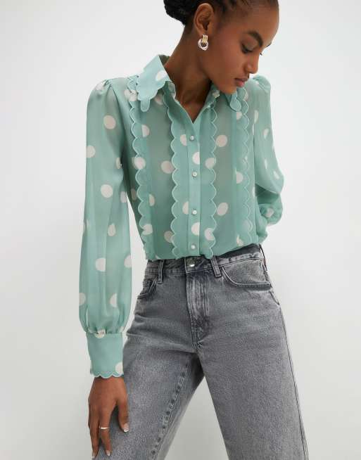 River Island Spot print scallop trim shirt in blue - light