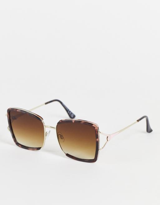 River Island square angular oversized glam sunglasses in tortoiseshell