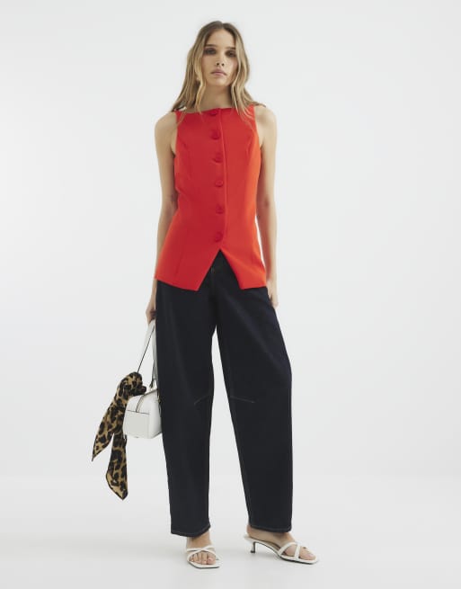 River Island Square neck strappy waistcoat in red