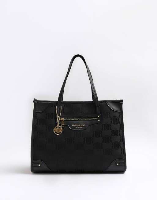 River Island square shopper bag in black