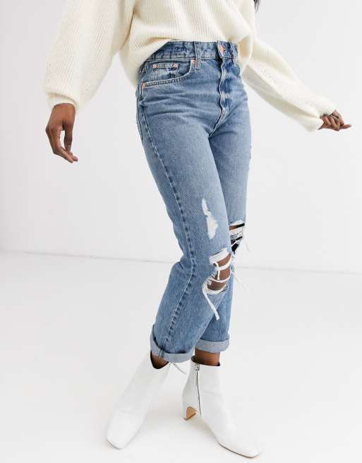 River Island Stormi destroyed mom jeans in mid blue authentic