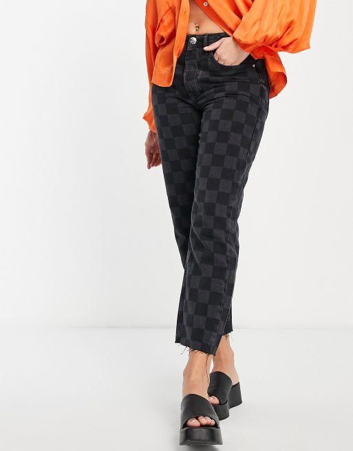 River Island straight cut checkerboard jeans in black