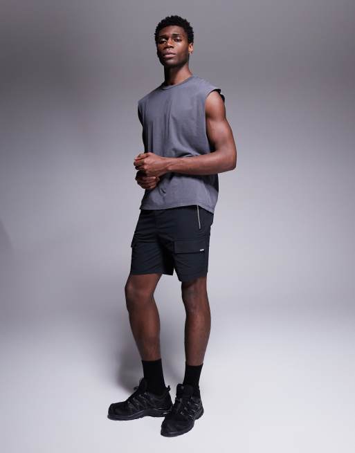 River Island stretch cargo shorts in black
