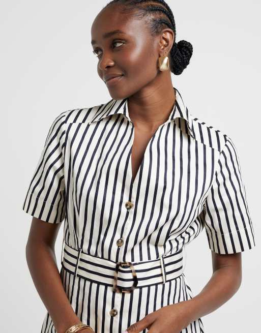 River Island Stripe belted mini shirt dress in navy
