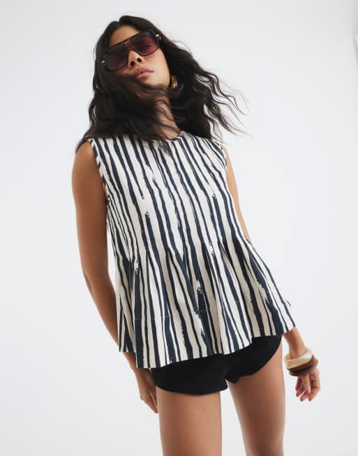 River Island Stripe sleeveless pleated top in black