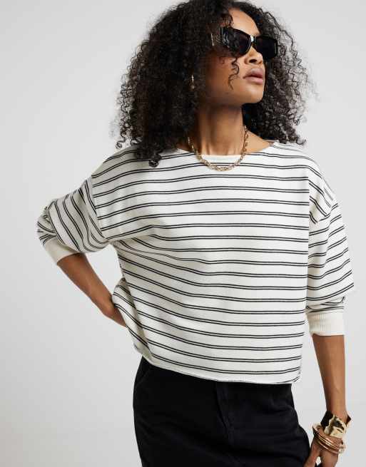 River Island Stripe sweatshirt in white