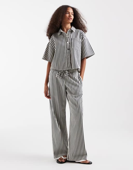 River Island striped boxy denim shirt and wide leg jeans