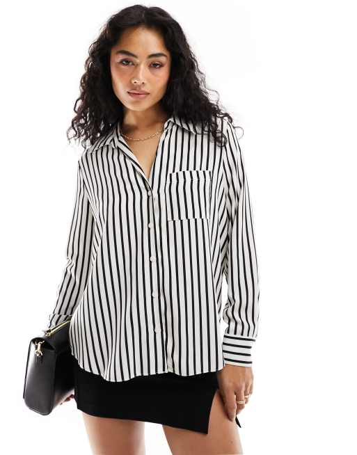 River Island striped satin shirt in black and white
