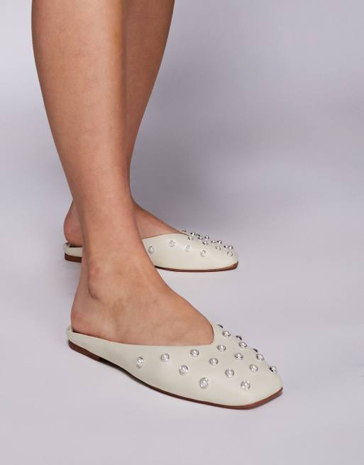 River Island studded mule shoe in cream