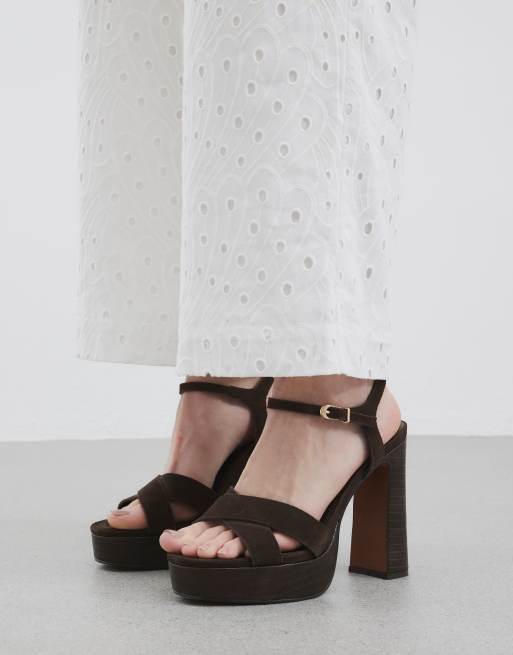 River Island Suede cross strap platform sandals in brown - dark