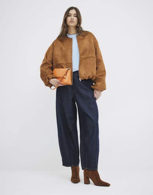 River Island Suedette bubble hem bomber jacket in brown / amber
