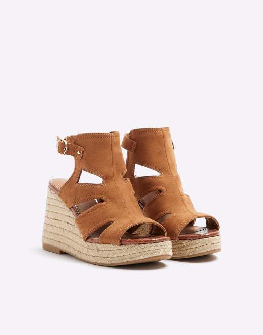 River Island Suedette cut out wedge sandals in brown