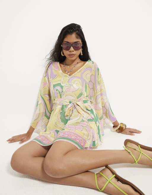 River Island Swirl chiffon mini kaftan in multi colour
