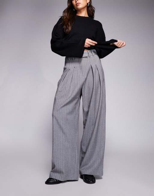 River Island tailored wide leg trouser in black