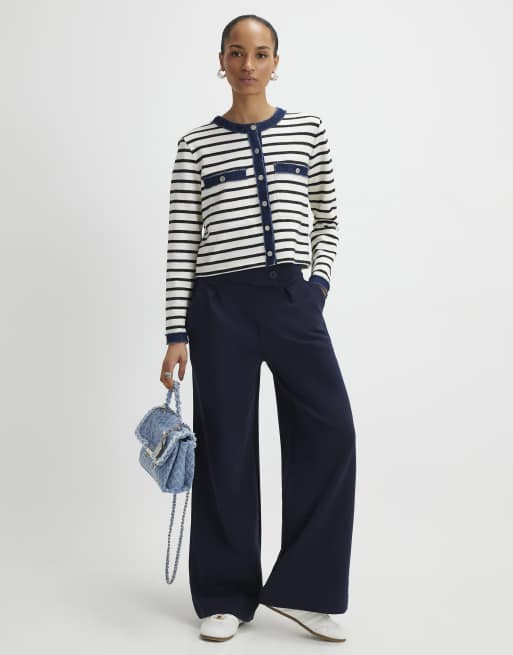 River Island Tailored wide leg trousers in navy