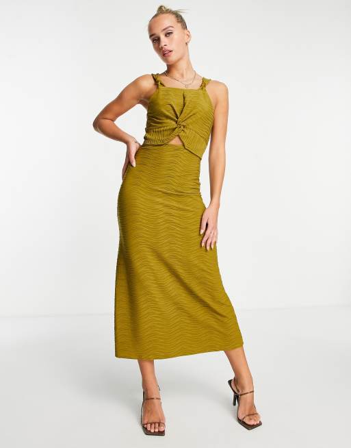 River Island texture knot cut out midi dress in green