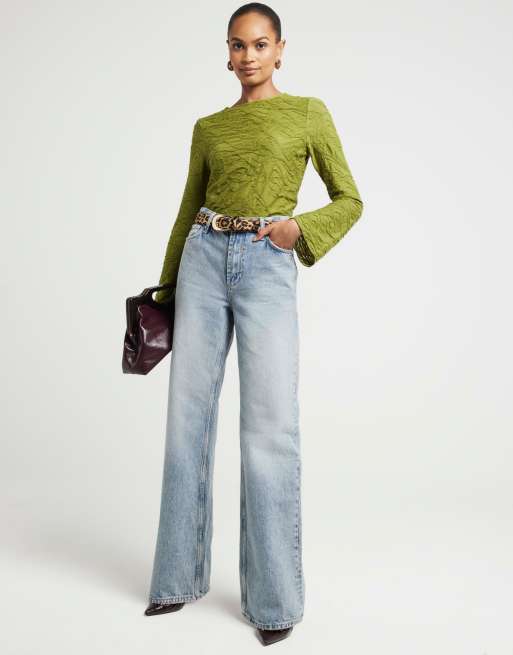 River Island Textured long sleeve top in green