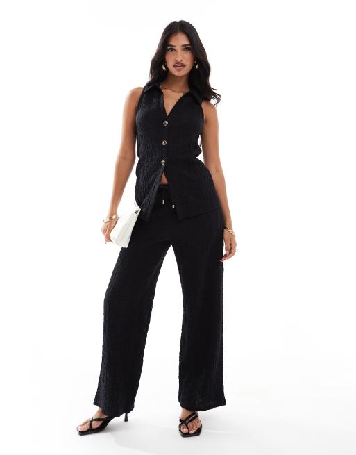 River Island textured wide leg trouser co-ord in black