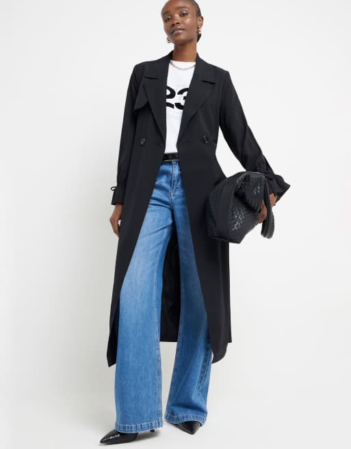 River Island Tie cuff belted duster coat in black