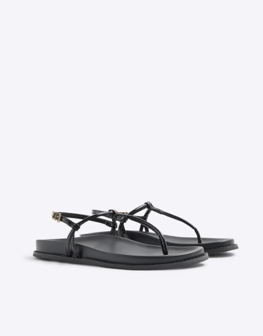 River Island Toe thong footbed sandals in black