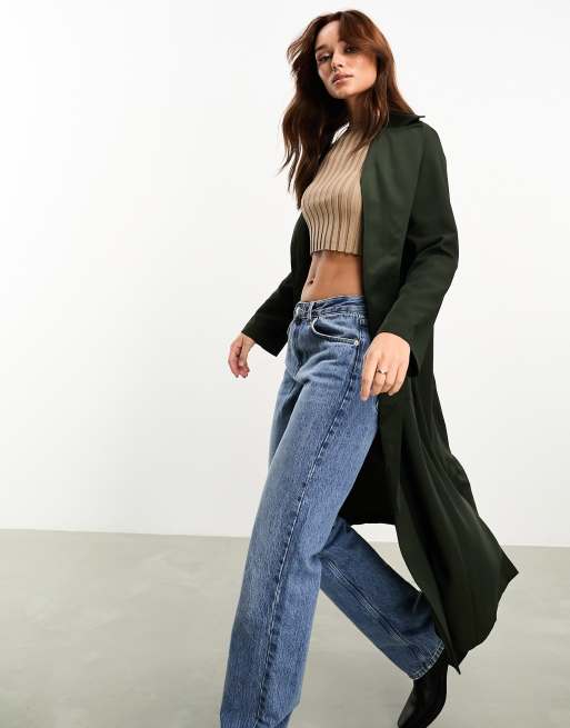 River Island Utility Satin Contrast Duster trench coat in Khaki