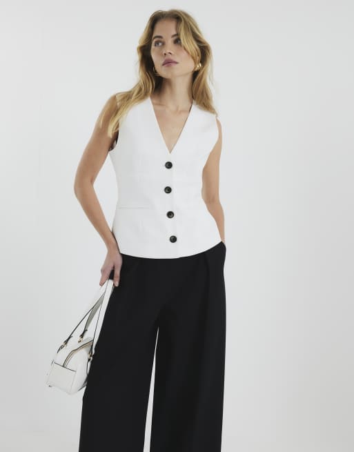 River Island V neck button front waistcoat in white