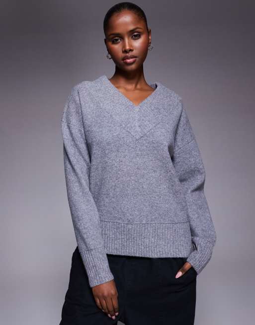 River Island v neck jumper in dark grey