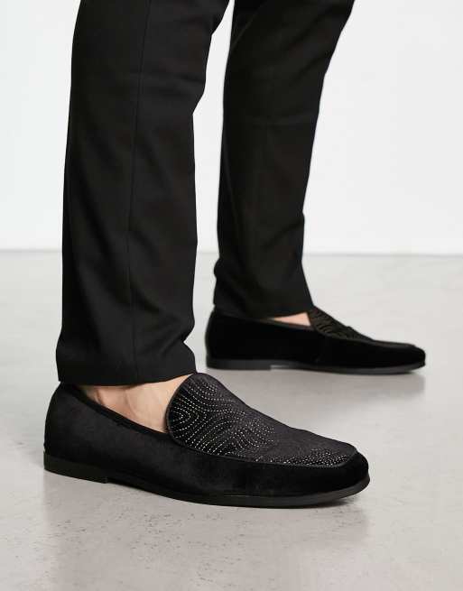 River Island velvet loafers in black