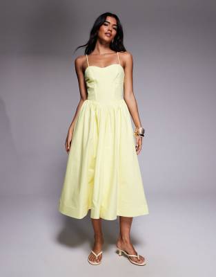 River Island volume corset detail midi dress in butter yellow