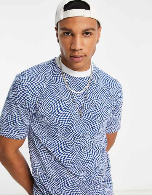 River Island warped checkerboard t-shirt in blue