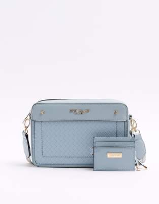 River Island Weave boxy cross body bag in blue - light