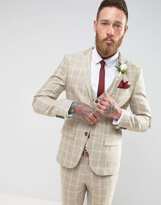 River Island Wedding Check Suit Jacket In Stone
