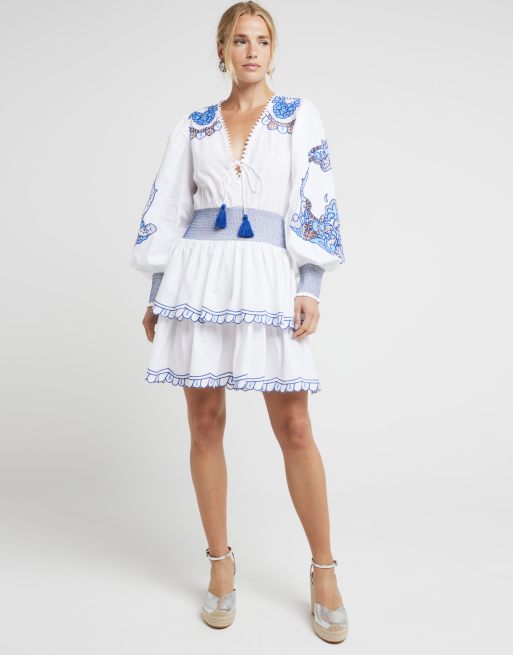River Island White embroidered cut work swing mini dress in cream