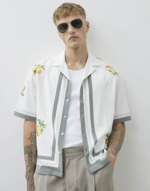 River Island White regular fit lemon print striped shirt in ecru