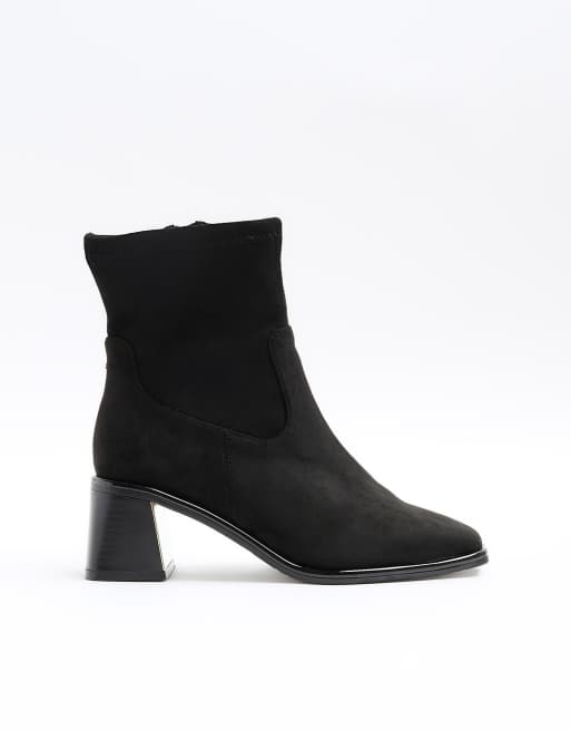 River Island Wide fit block heel ankle boots in black