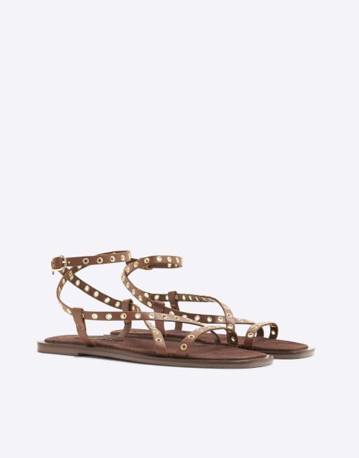 River Island Wide fit eyelet strappy sandals in brown / amber
